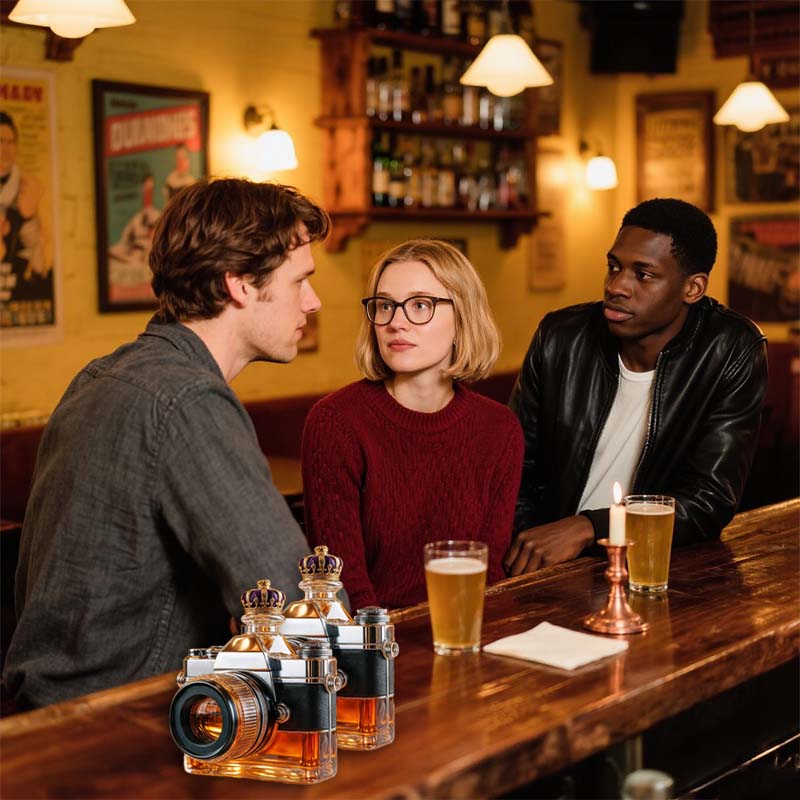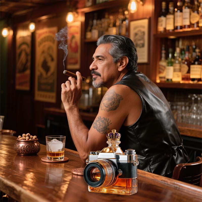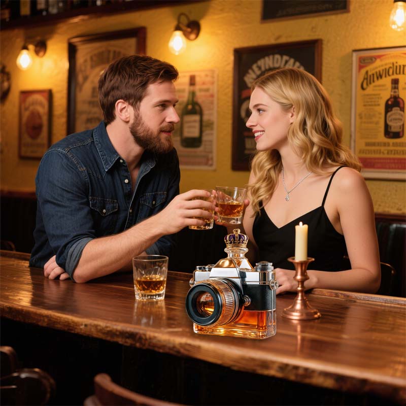Sirva con estilo con este decantador de vidrio inspirado en cámaras que combina arte y funcionalidad. Diseñado para coleccionistas, fotógrafos y aficionados, le da un toque único a su bar o decoración del hogar.